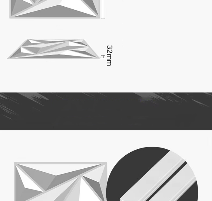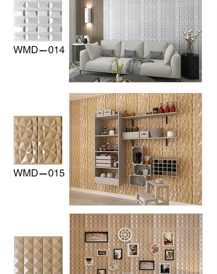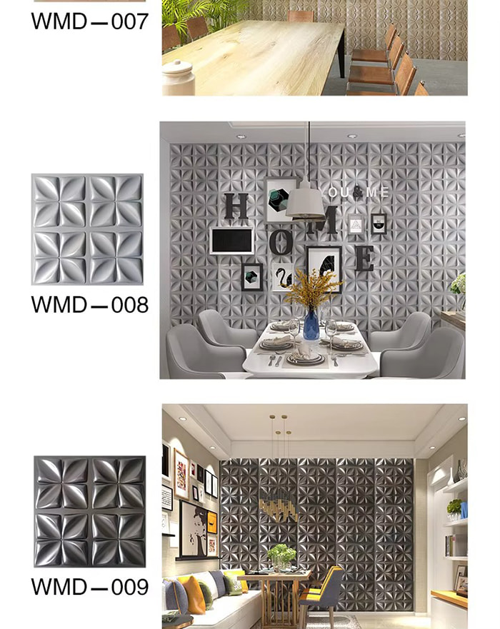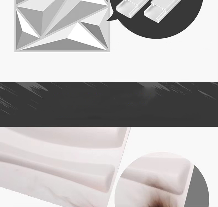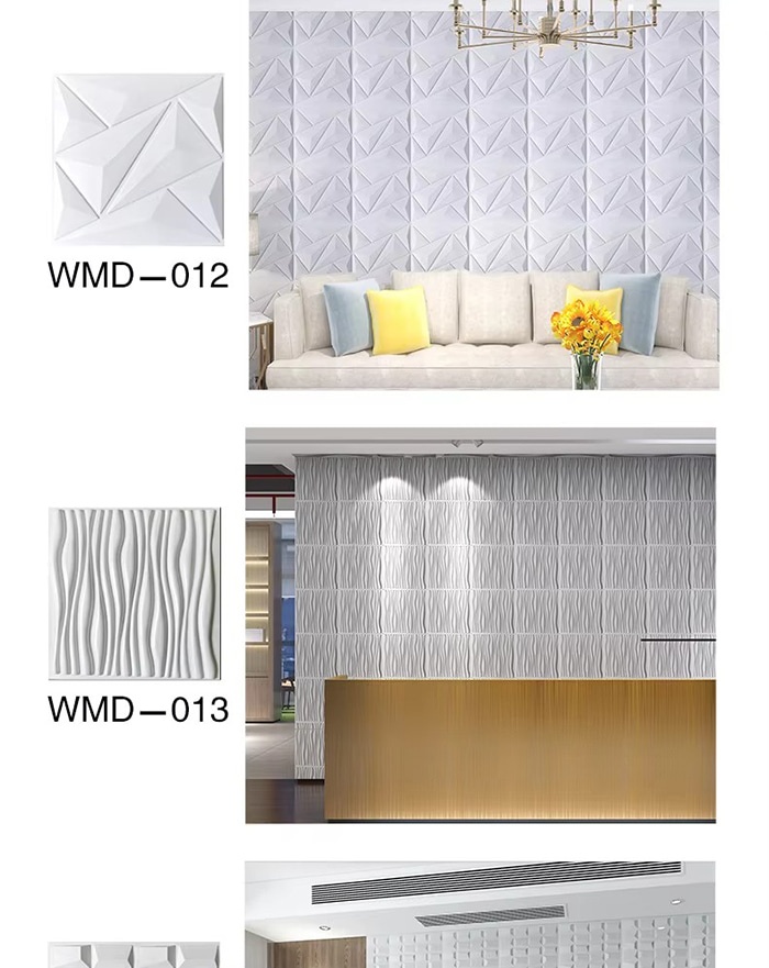 3D väggpaneler är en ny typ av dekorativt material. Genom formvarmpressning, gravering och fräsning eller CNC-tryckning bildas tredimensionella mönster på panelernas yta. Dess basmaterial inkluderar PVC, densitetsskiva, aluminiumlegering, bambufiber etc. Med PVC som exempel extruderas högmolekylära kompositmaterial vid hög temperatur, och ytmönstren pressas av precisionsstålformar, med minsta konkava och konvexa precision som når 0,1 mm. 3D-väggpaneler har en tredimensionell visuell effekt. Genom principen om ljus- och skuggbrytning omvandlas 2D-planet till en visuell 3D-effekt med en känsla av djup, och den visuella skiktningen ökas med mer än 3 gånger under samma yta.
