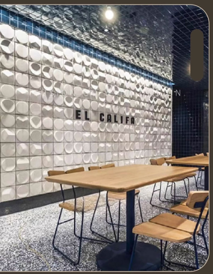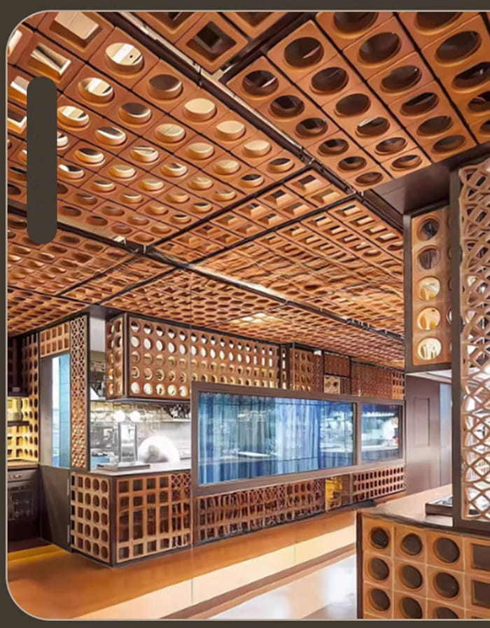 Arkitektonisk dekorationInvändig vägg/tak : Design som metallborstning och träfibrer förstärker utrymmets struktur och är lämpliga för hotell, utställningshallar, villor etc.
